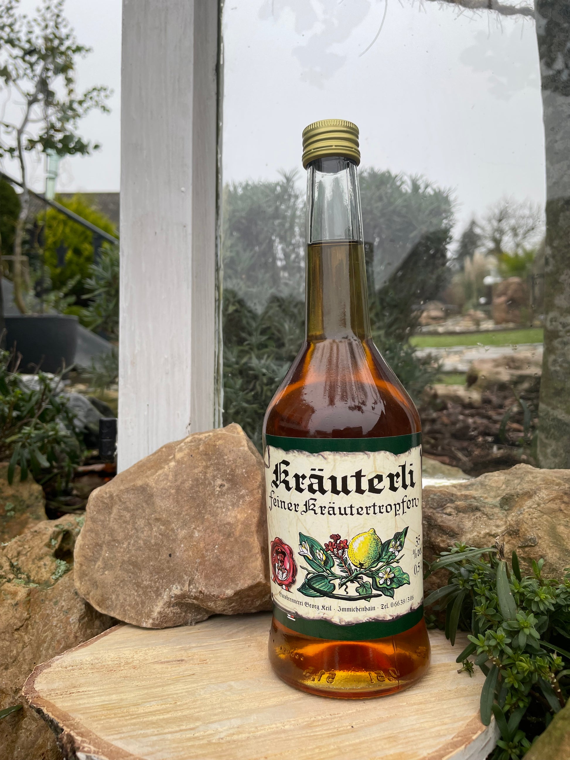 Probieren Sie Kräuterli, ein feinwürziger und kräftiger Kräuterschnaps. Die auserlesene Kräutermischung lässt sich nicht in Worte fassen, Sie müssen ihn selbst probieren, um seine Geschmacksintensität zu erleben.