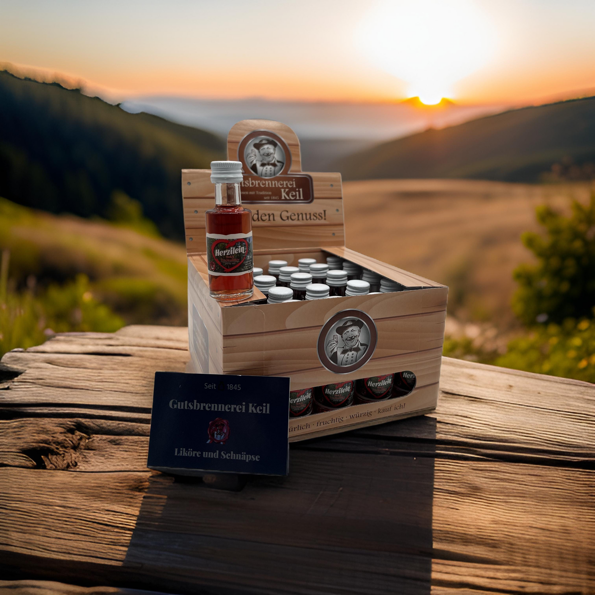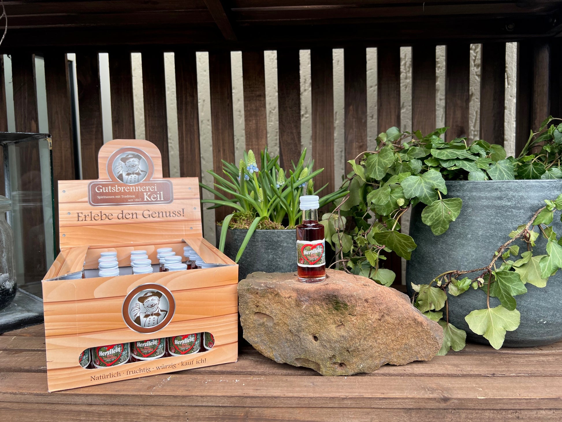 Erleben Sie den vollen Geschmack von Herzilein, dem edlen Kirschlikör. Seine fruchtige Farbe macht ihn zu einem optischen Genuss. Perfekt für alle, die das Besondere lieben. Genießen Sie den vollmundigen Geschmack und lassen Sie sich von Herzilein verzaubern..